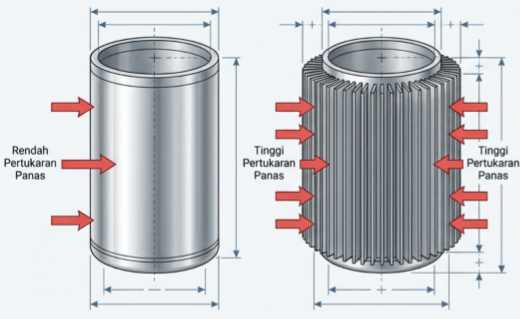 Agar proses pendinginan lebih efisien, bentuk wadah refrigeran diubah supaya memiliki luas permukaan yang lebih besar sehingga kontak dengan udara atau objek yang didinginkan juga lebih banyak. Wadah dengan sirip-sirip (fin) digunakan agar pertukaran panas lebih optimal.