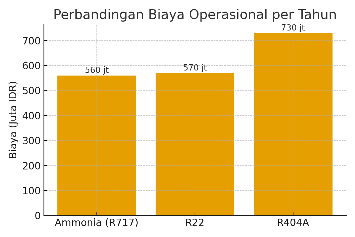 💡 Bayangkan jika Anda punya 100 kapal, selisih biaya antara Ammonia dan Freon bisa mencapai Rp 17 miliar/tahun!
